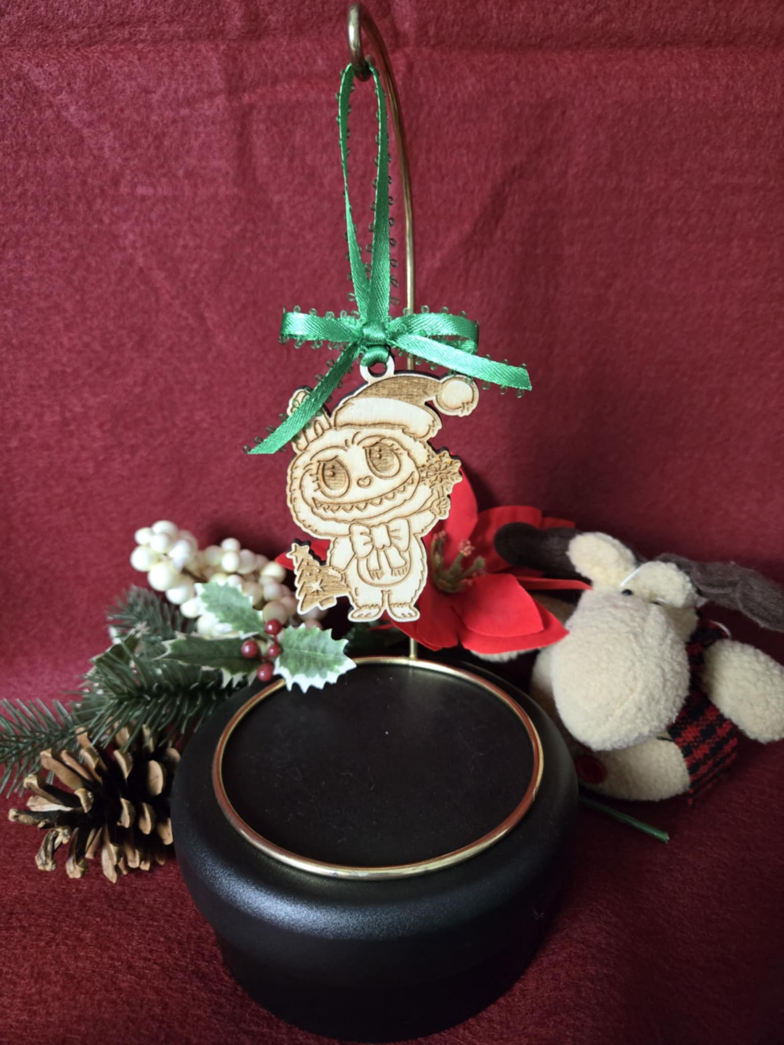 Laser Engraved Wood Christmas Ornament Labu Style Simple