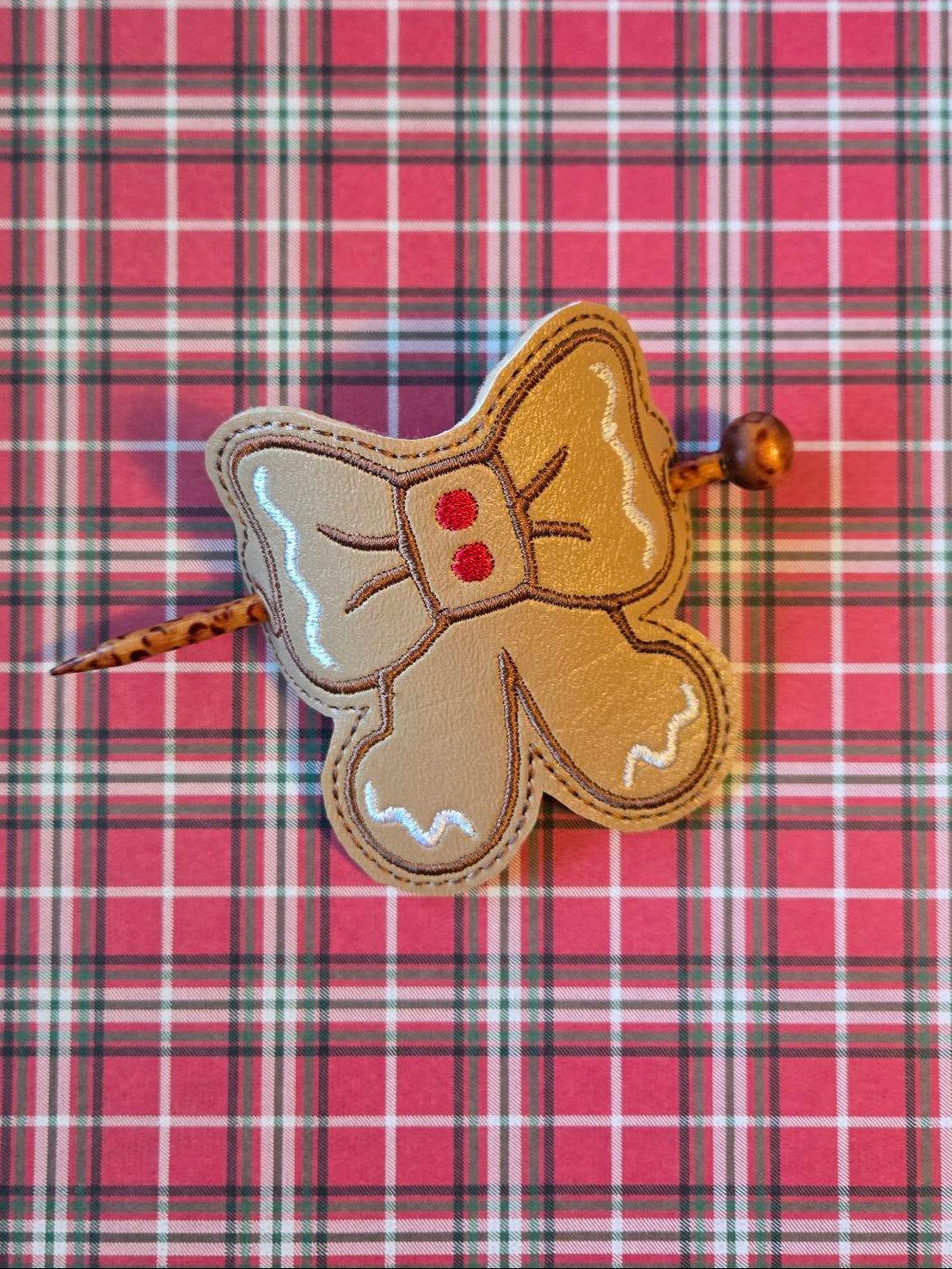This is a Digital Pattern for Gingerbread Bow Hair Bun Holder Embroidered Design.