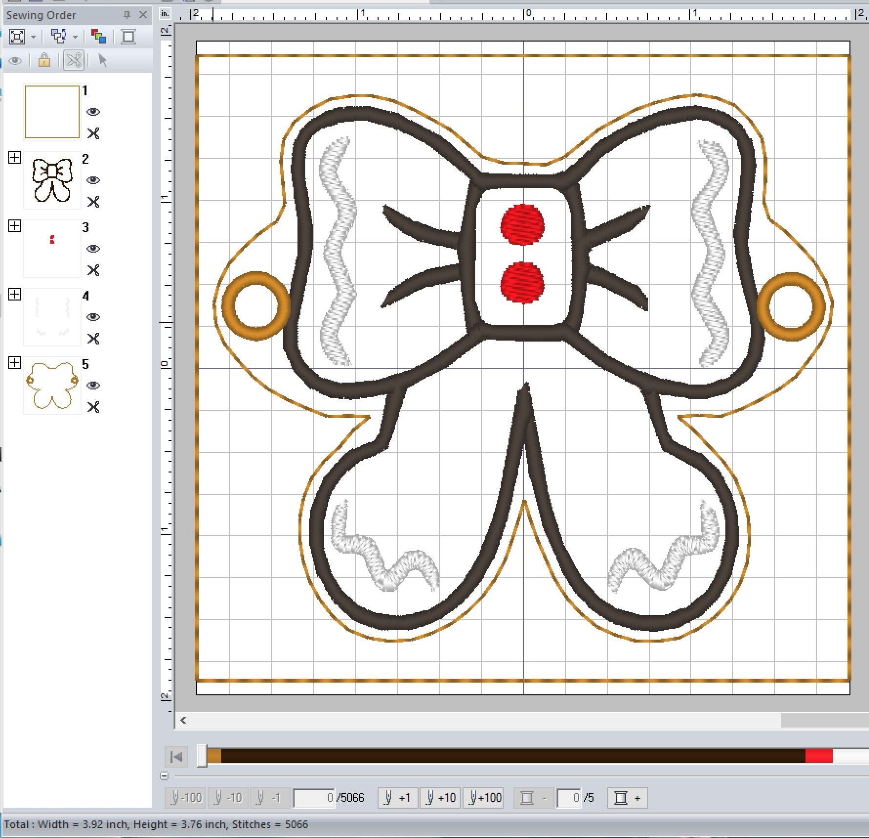This pattern is 4X4 hoop friendly. This ITH design cannot be Split.