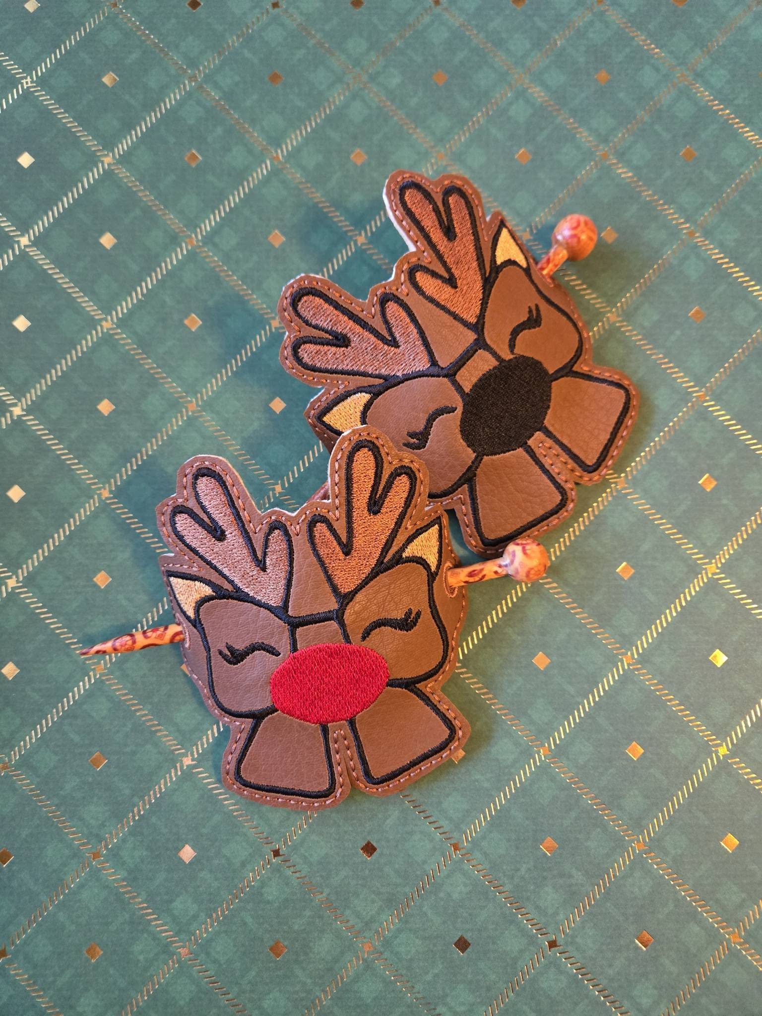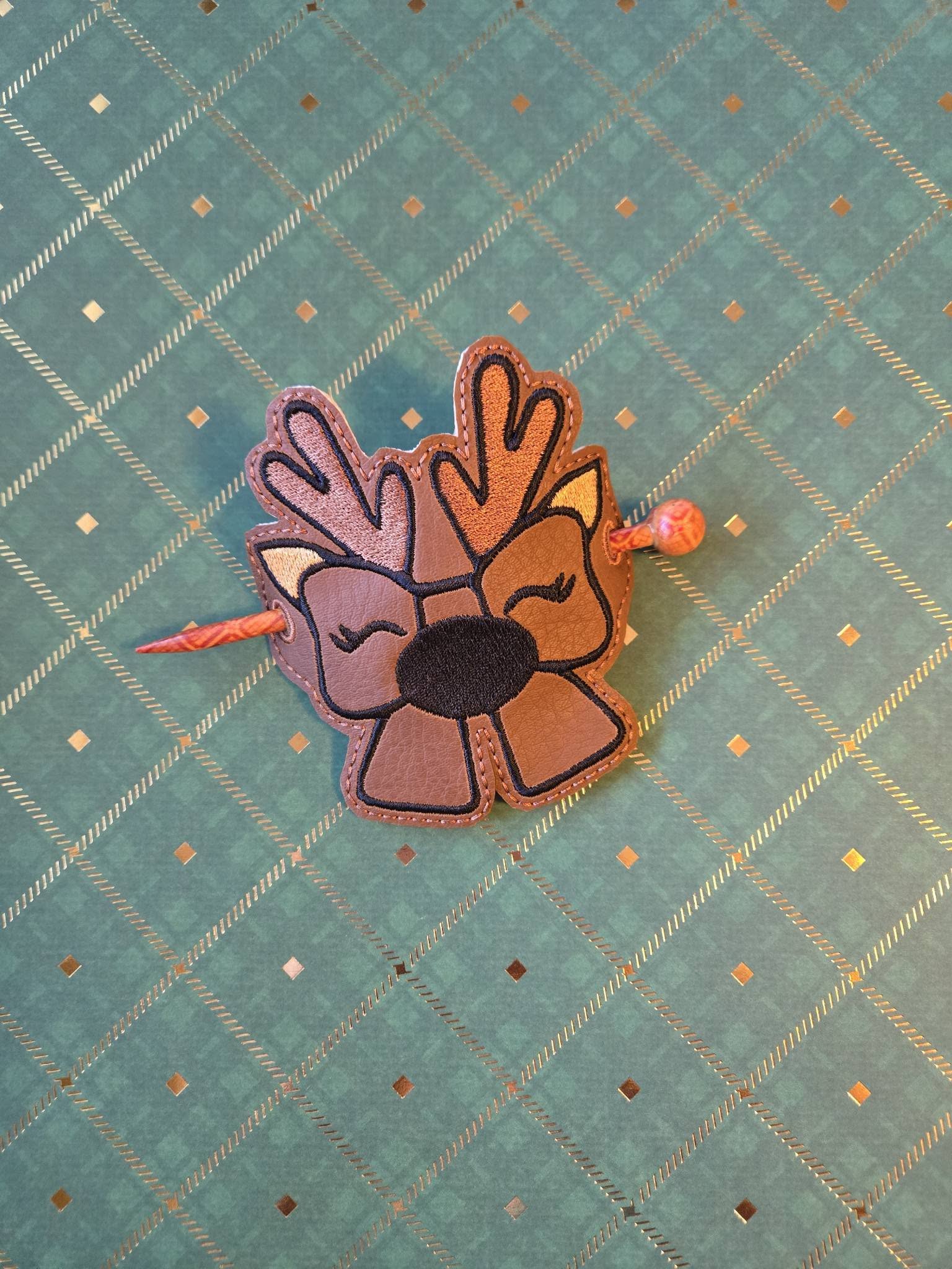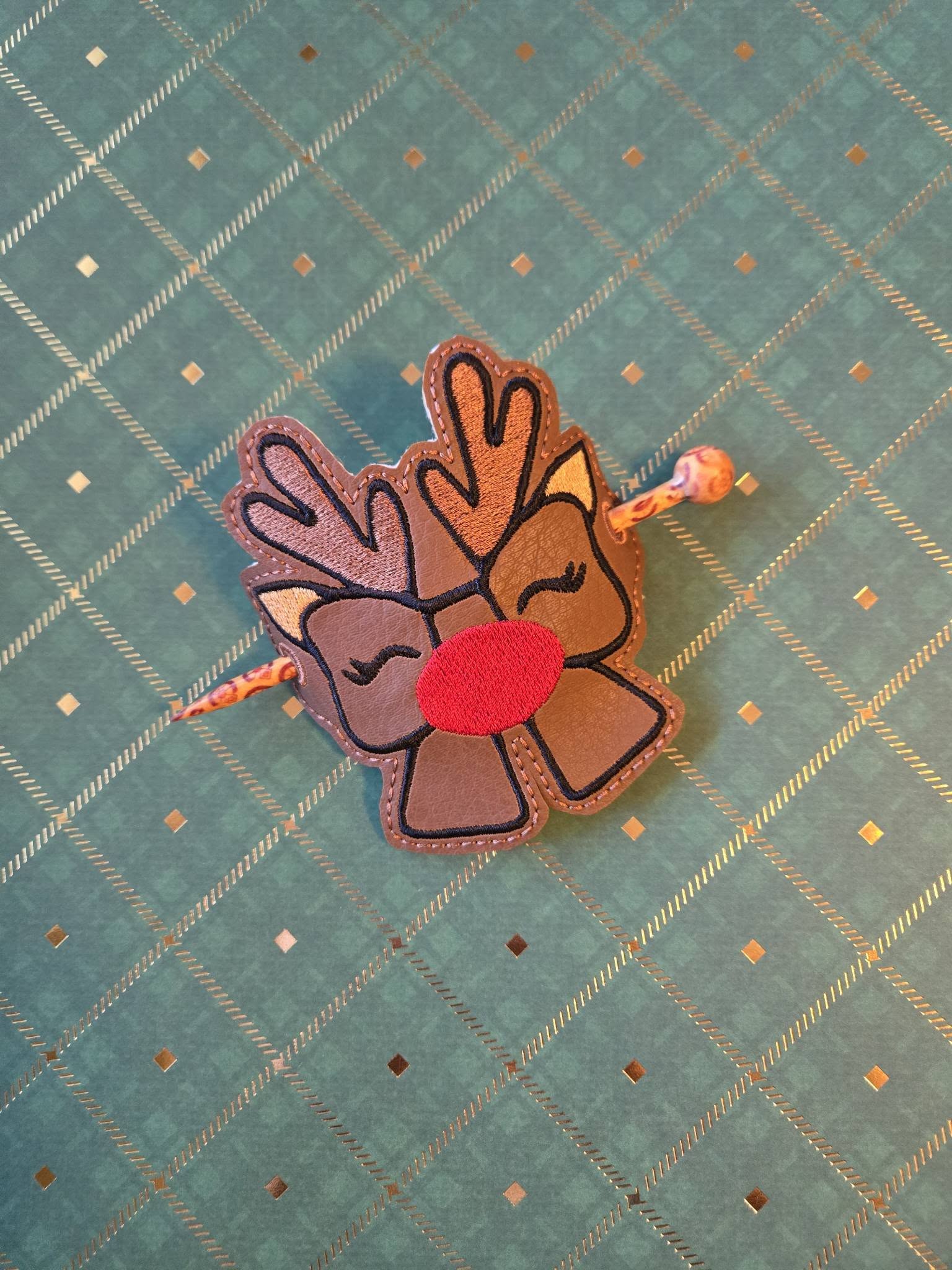 This is a Digital Pattern for Reindeer Bow Hair Bun Holder Embroidered Design.