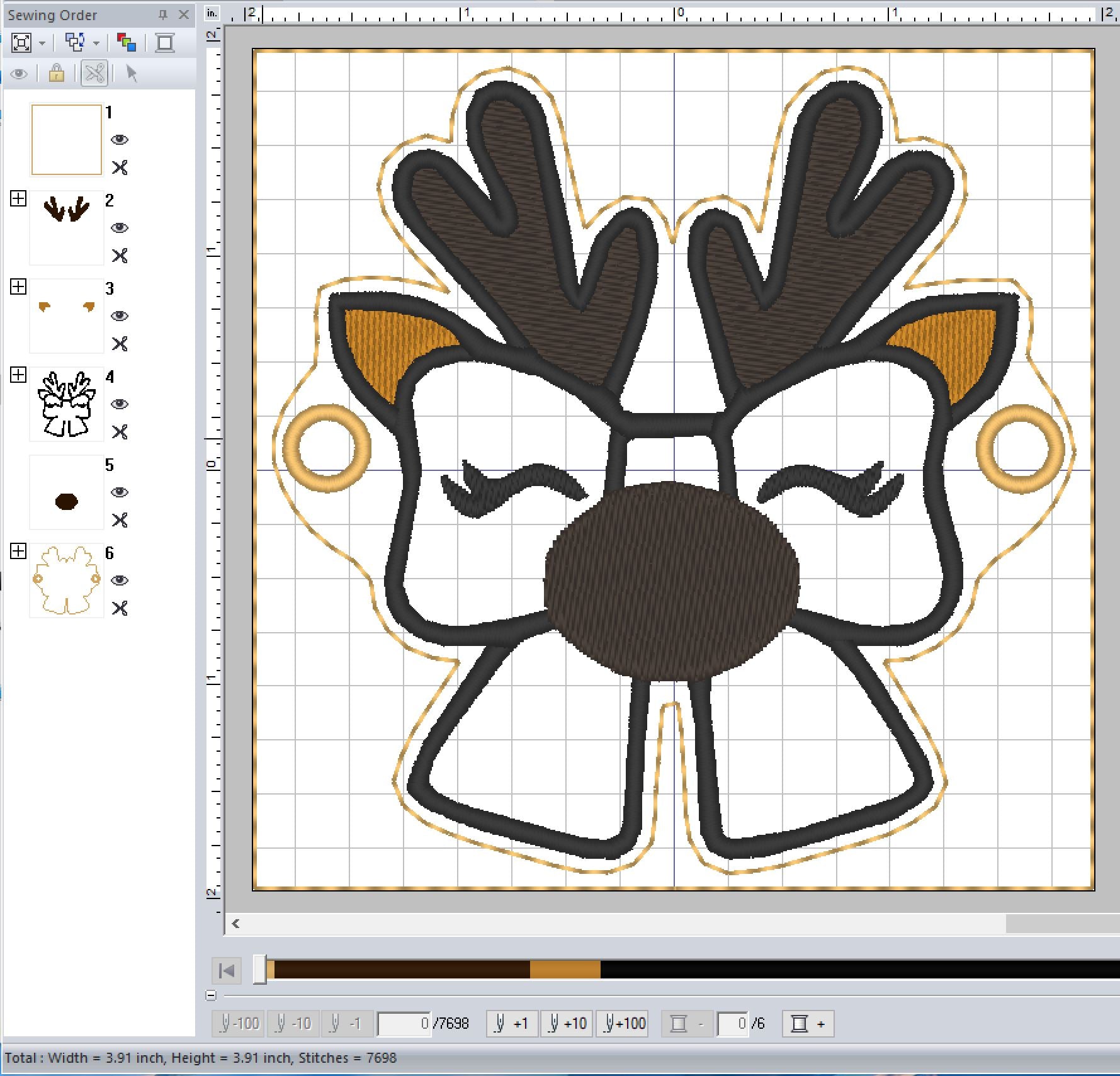 This pattern is 4X4 hoop friendly. This ITH design cannot be Split.