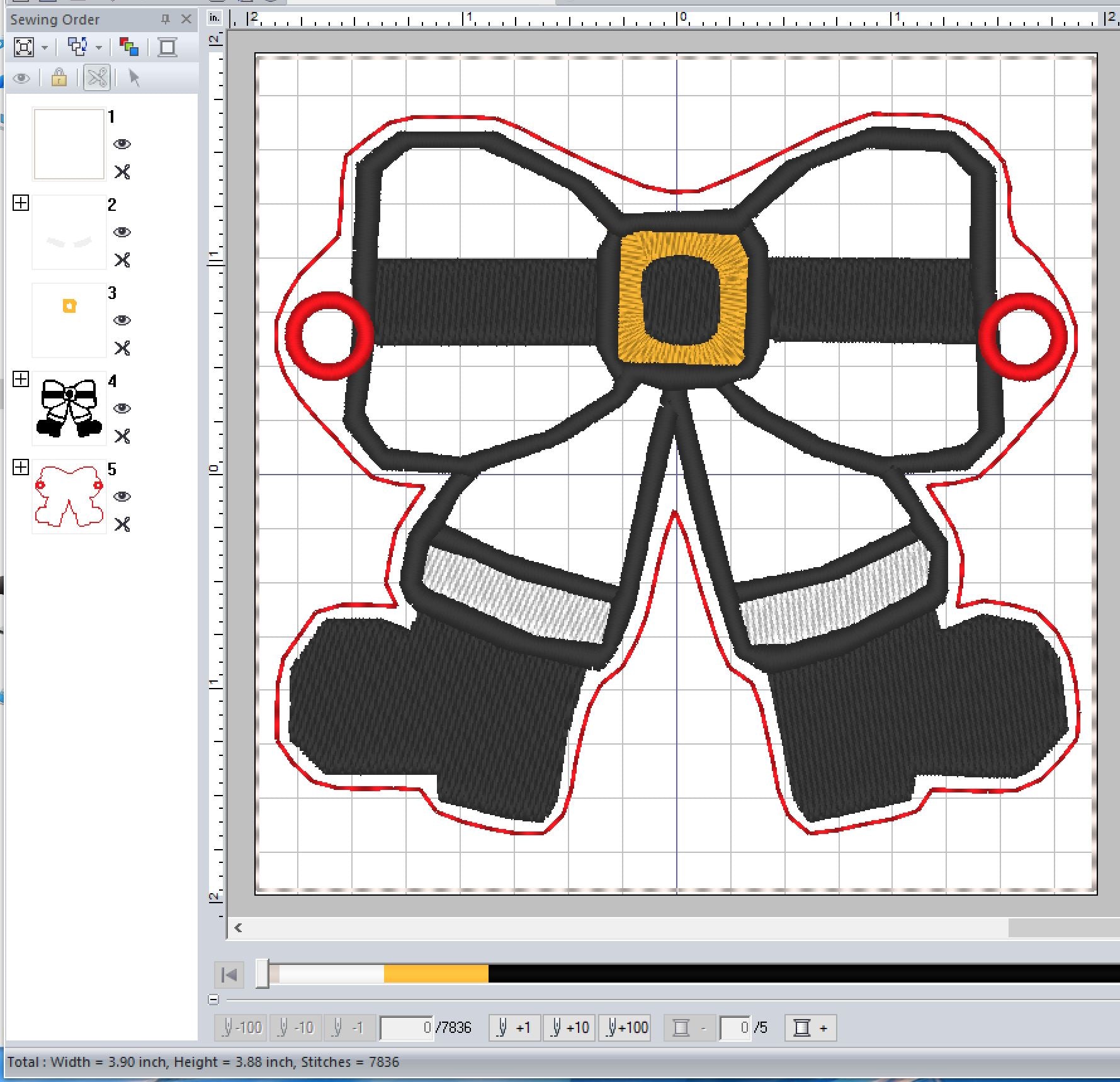 This pattern is 4X4 hoop friendly. This ITH design cannot be Split.
