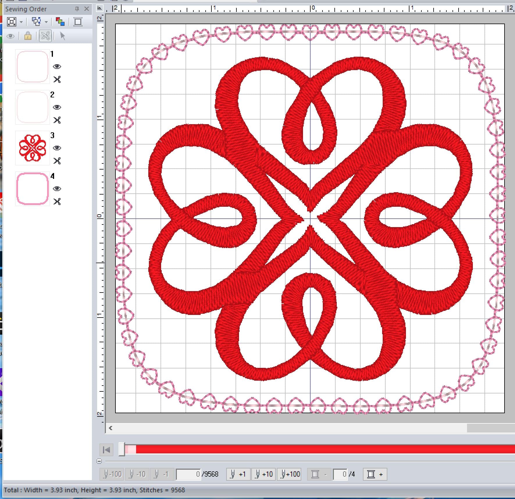 ITH Digital Embroidery Pattern for 4 Heart Coaster, 4X4 Hoop