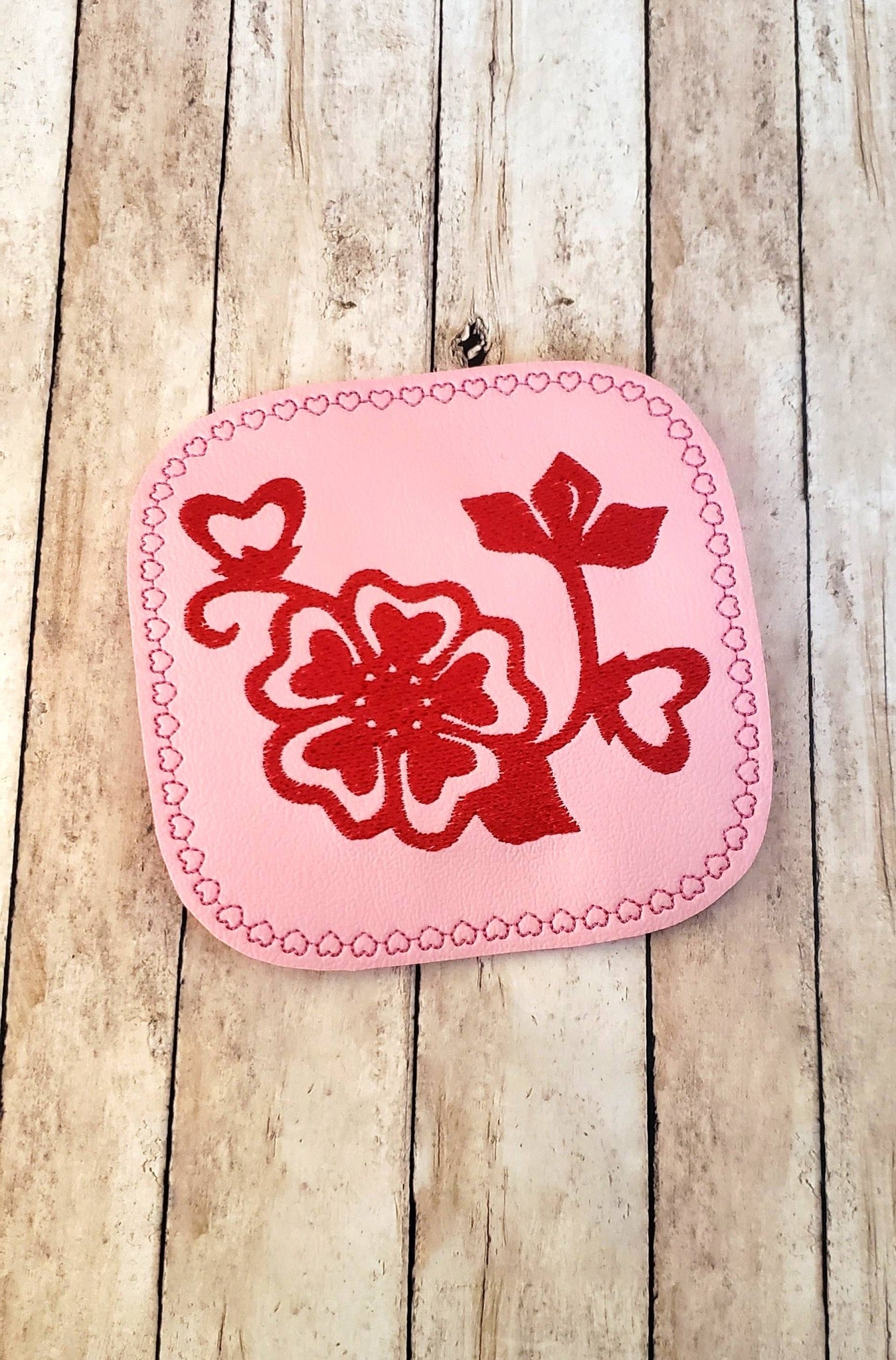 This is a Digital Pattern for Floral with a Touch of Hearts Coaster Embroidered Design.