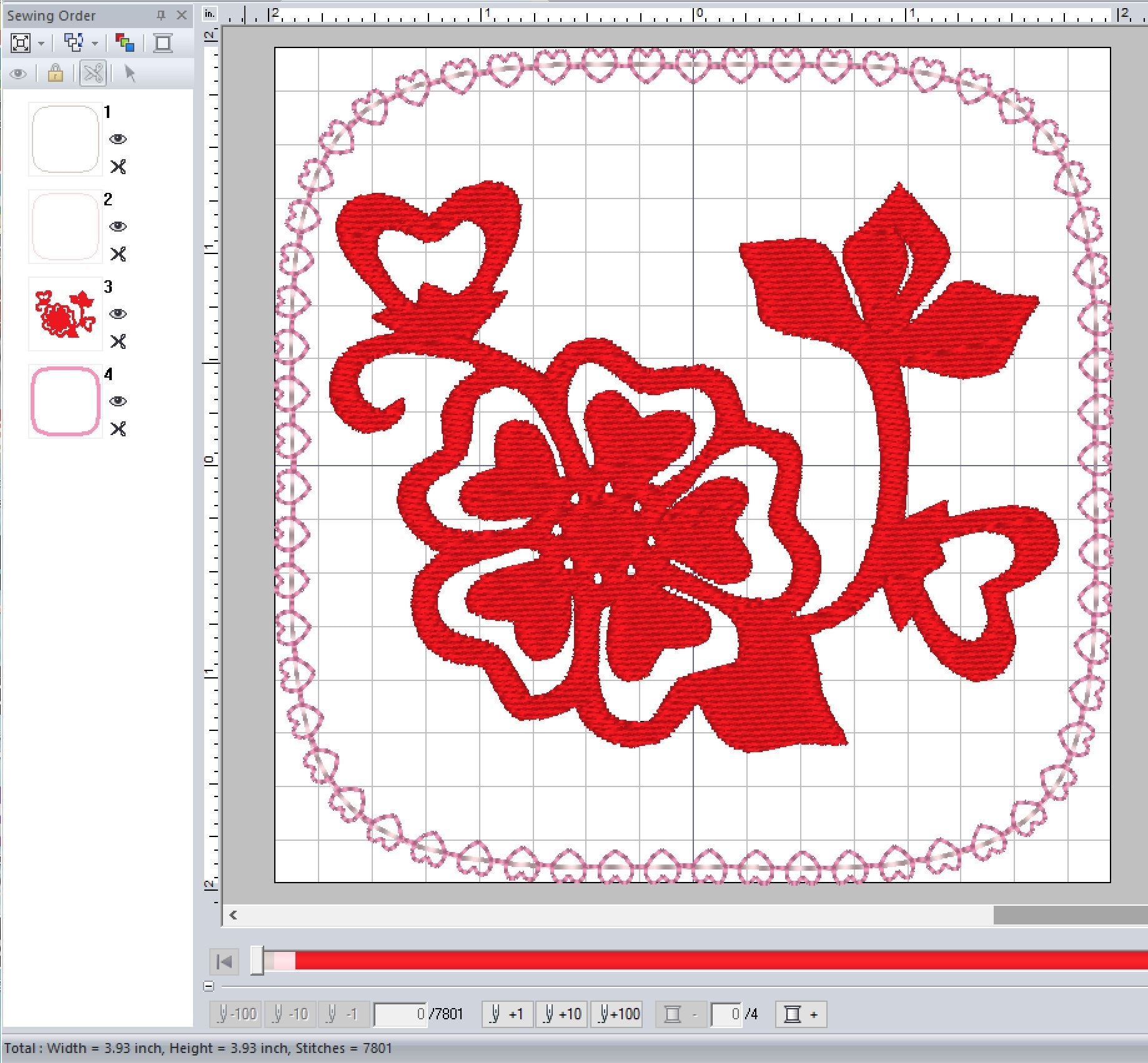 ITH Digital Embroidery Pattern for Floral With A Touch of Hearts Coaster, 4X4 Hoop