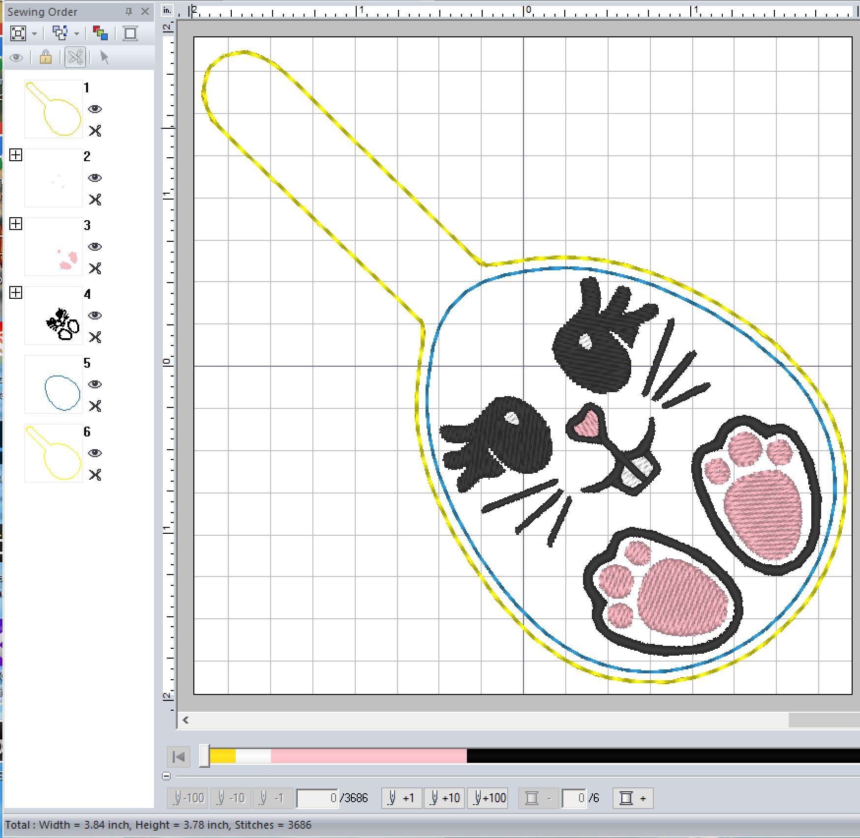 ITH Digital Embroidery Pattern for Bunny Face Egg Snap Tab / Keychain, 4X4 Hoop