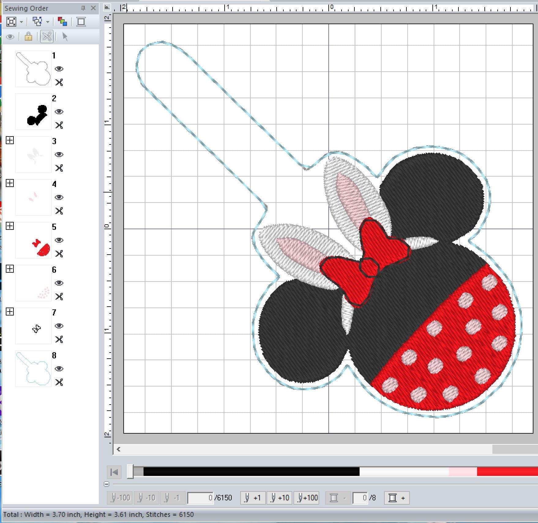 This pattern is 4X4 hoop friendly. This ITH design cannot be Split.