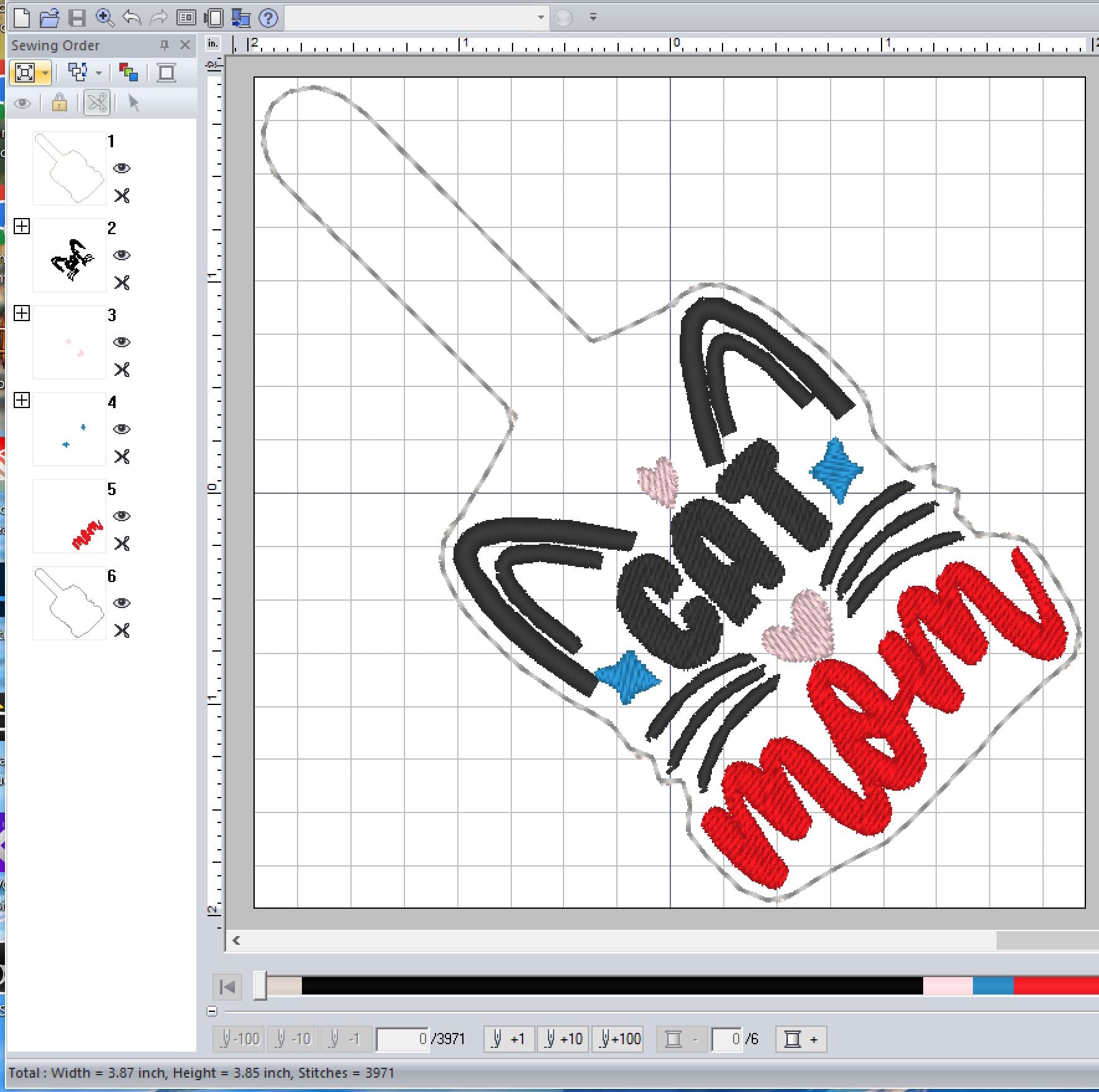 This is a Digital Pattern for Cat Mom Face Snap Tab / Key Chain Embroidered Design.