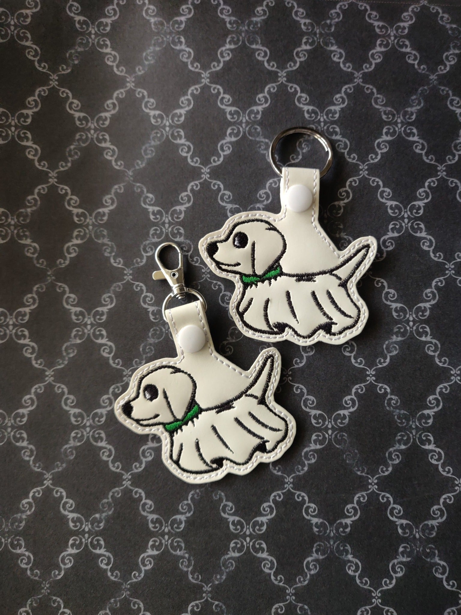 This is a Digital Pattern for Ghost Dog Snap Tab / Key Chain Embroidered Design.