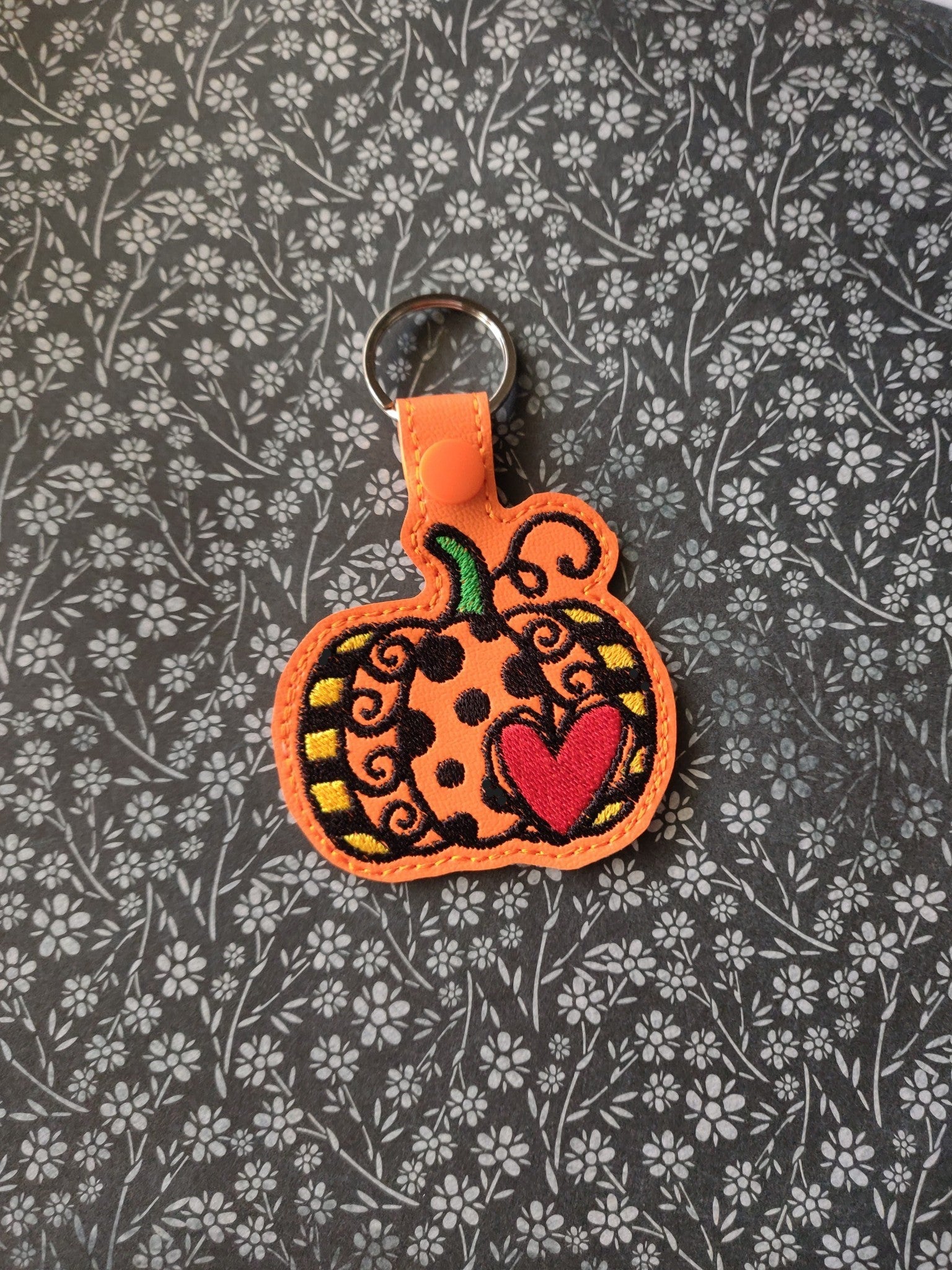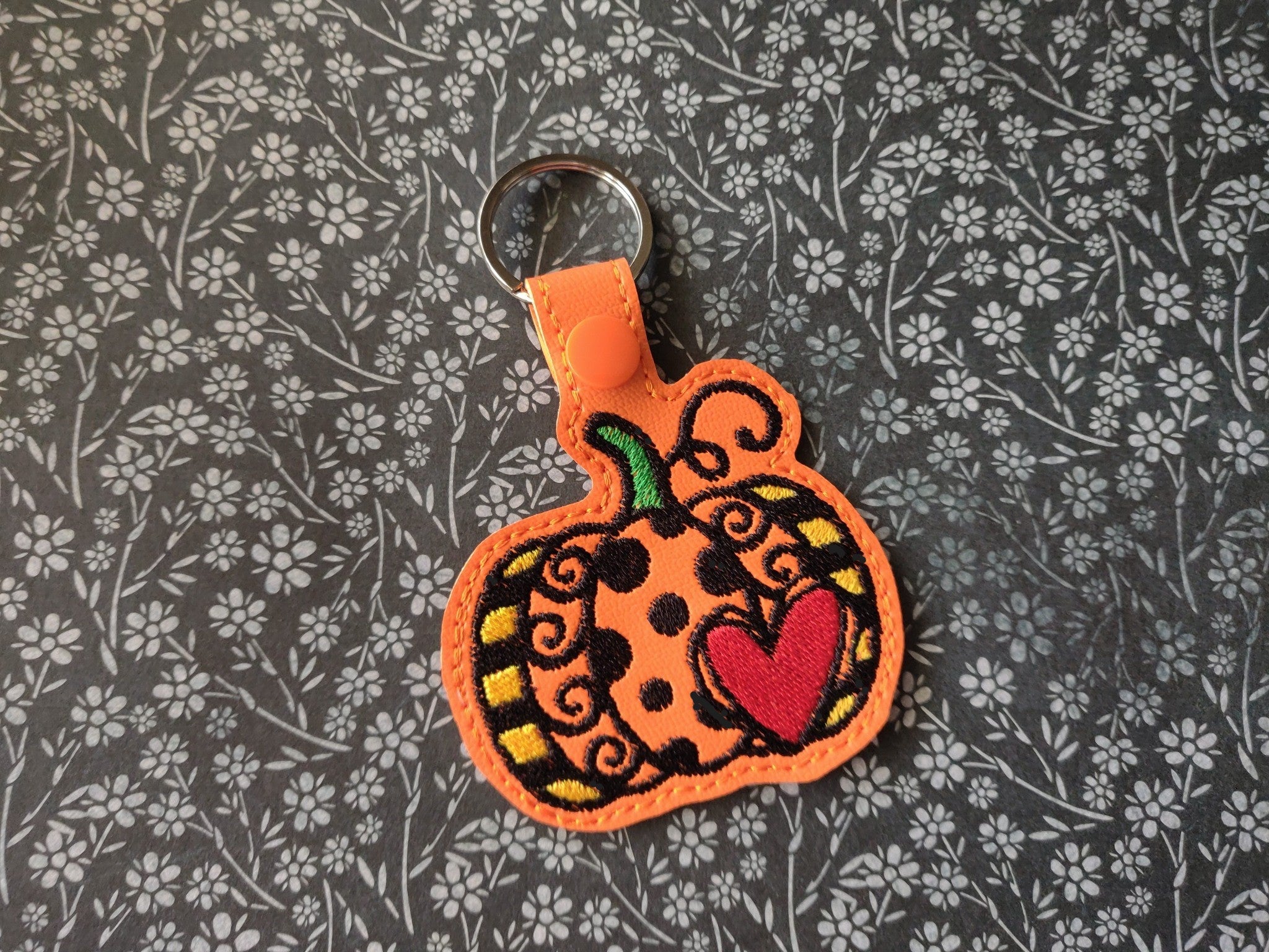 This is a Digital Pattern for Pumpkin Love Patch Snap Tab / Key Chain Embroidered Design.