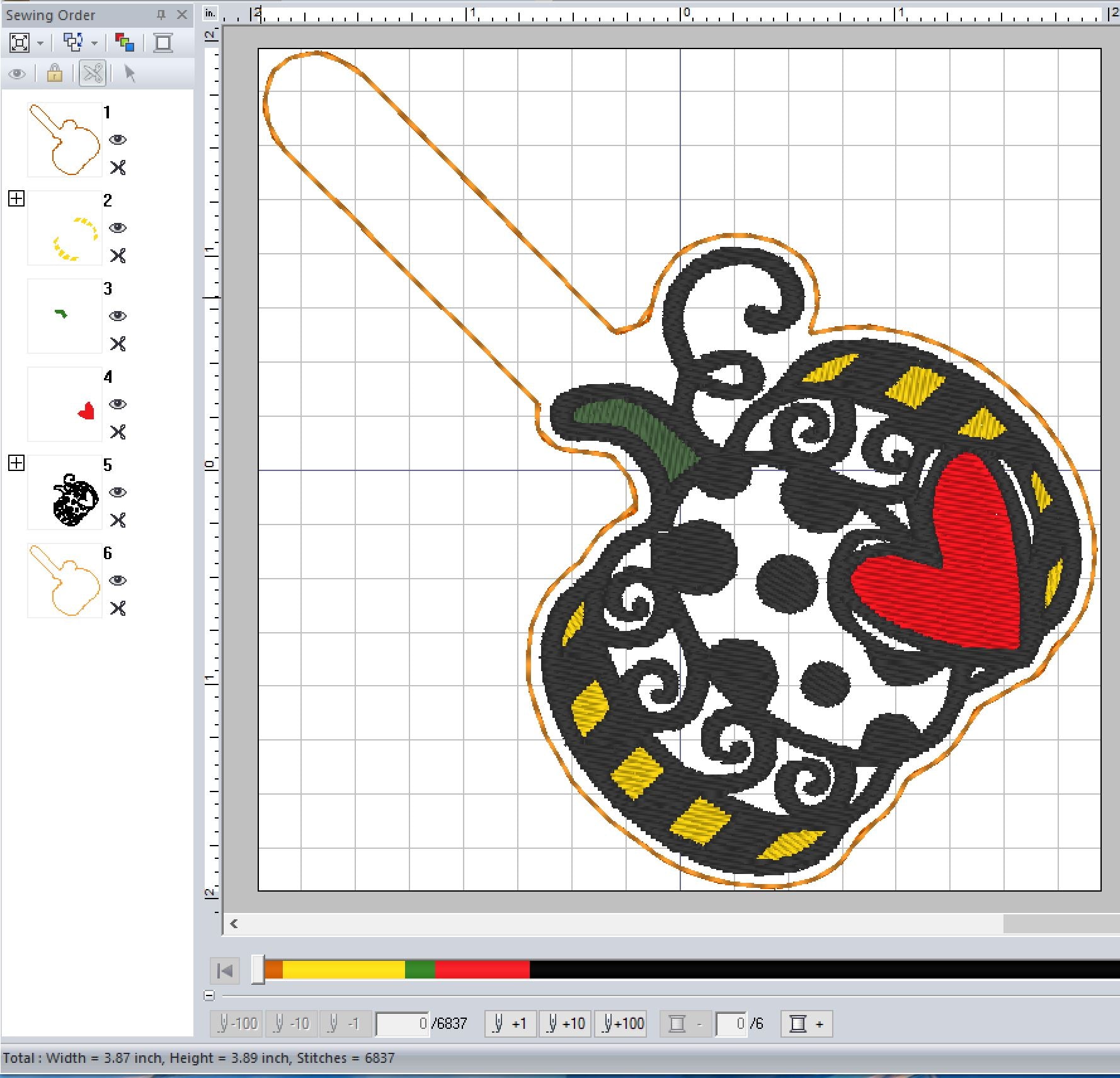 This pattern is 4X4 hoop friendly. This ITH design cannot be Split.
