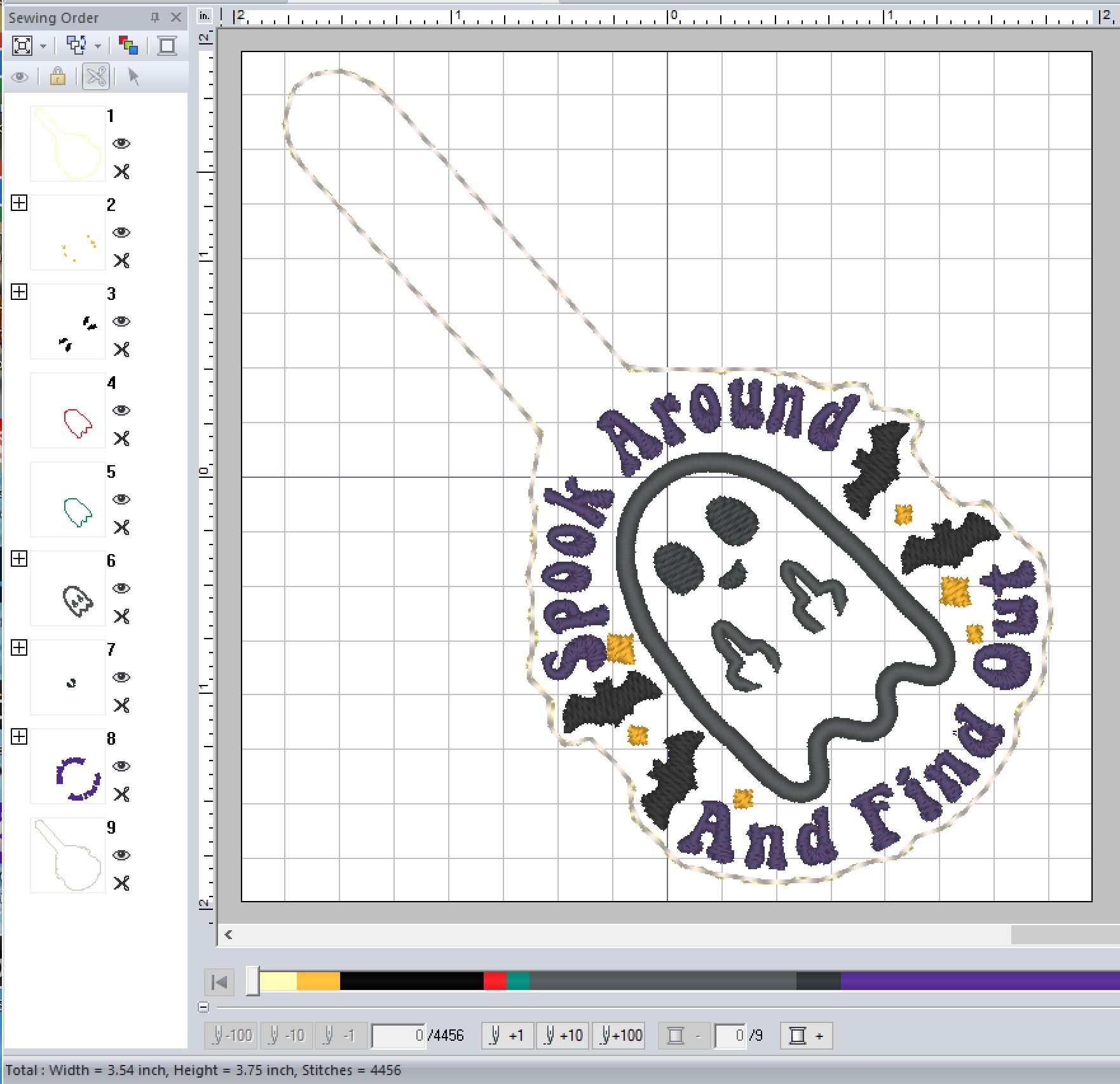 ITH Digital Embroidery Pattern for Spook Around & Find Out Applique Snap Tab / Keychain, 4X4 Hoop