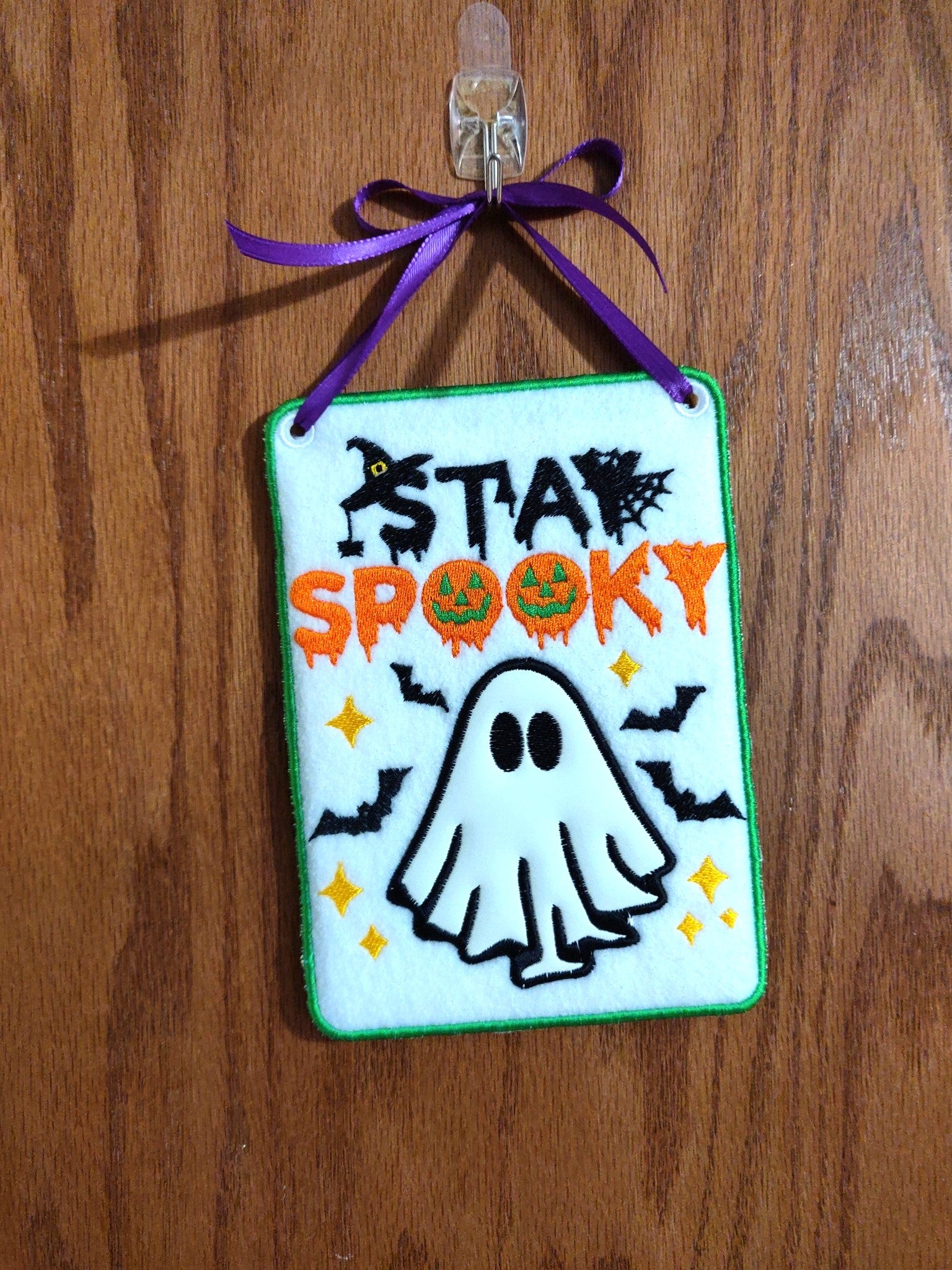 This is a Digital Pattern for Stay Spooky Applique Ghost 5X7 Sign Embroidered Design.