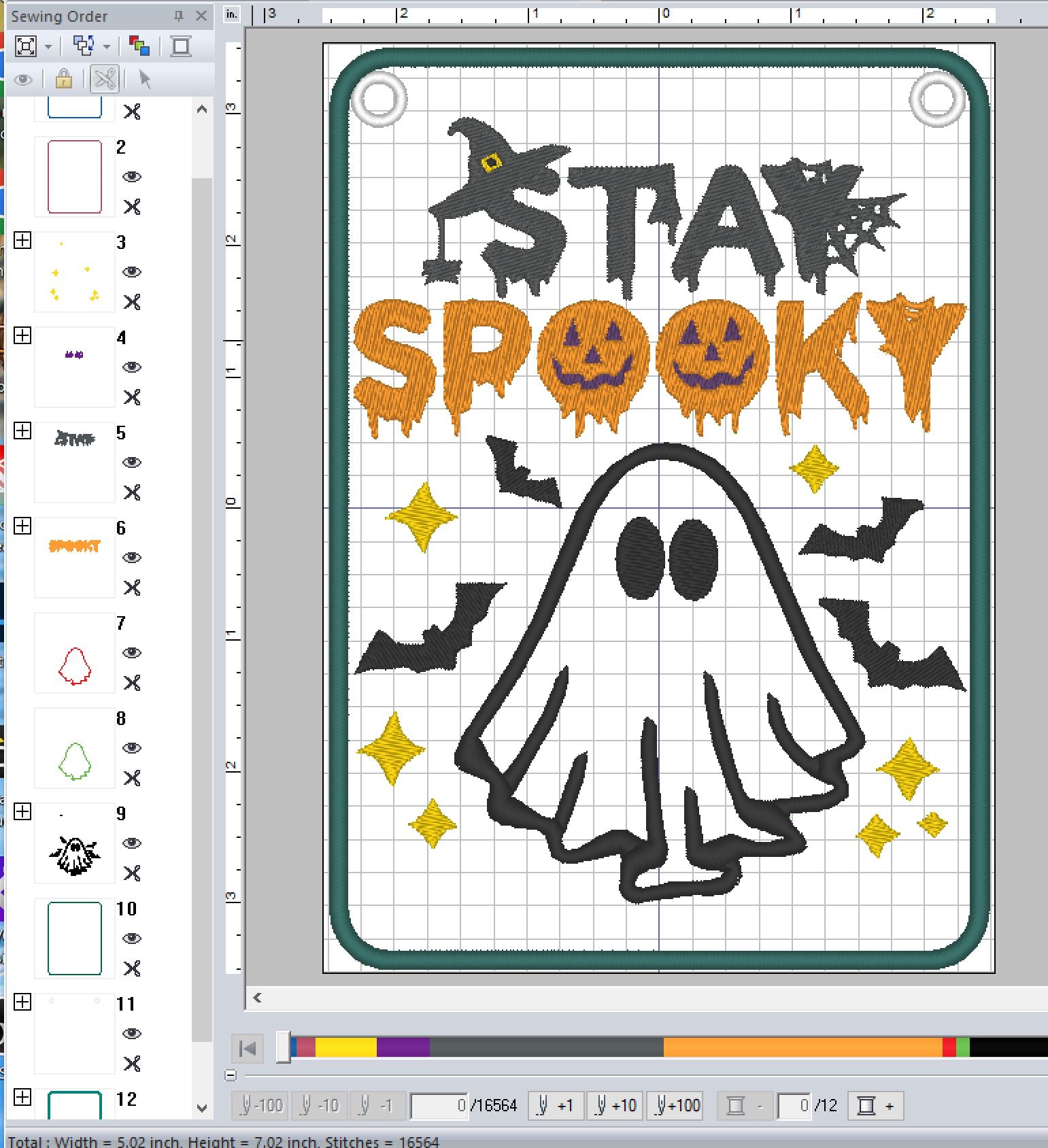 ITH Digital Embroidery Pattern for Stay Spooky Applique Ghost 5X7 Sign, 5X7 Hoop