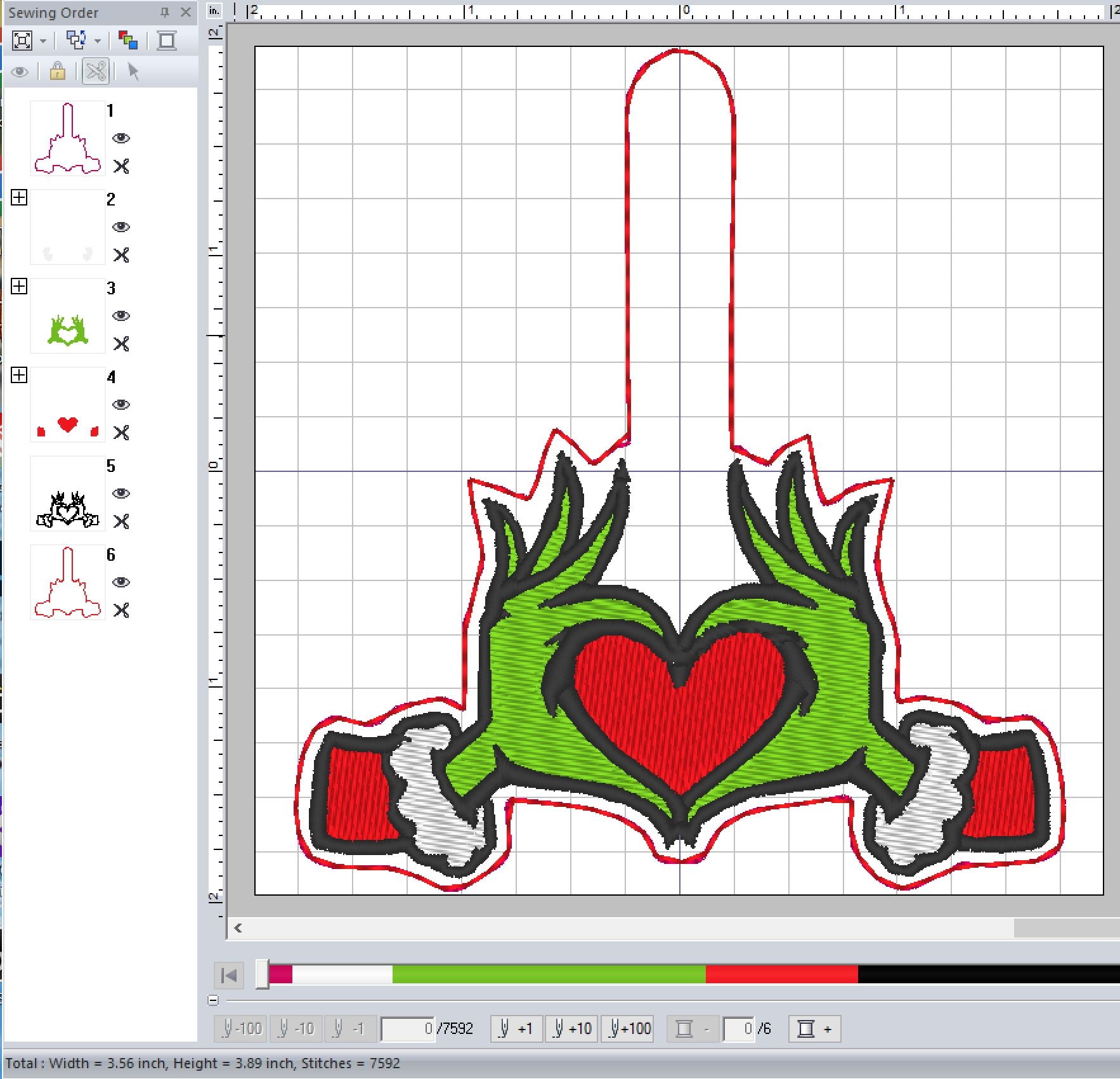 ITH Digital Embroidery Pattern for Grinch Heart Hands Snap Tab / Keychain, 4X4 Hoop