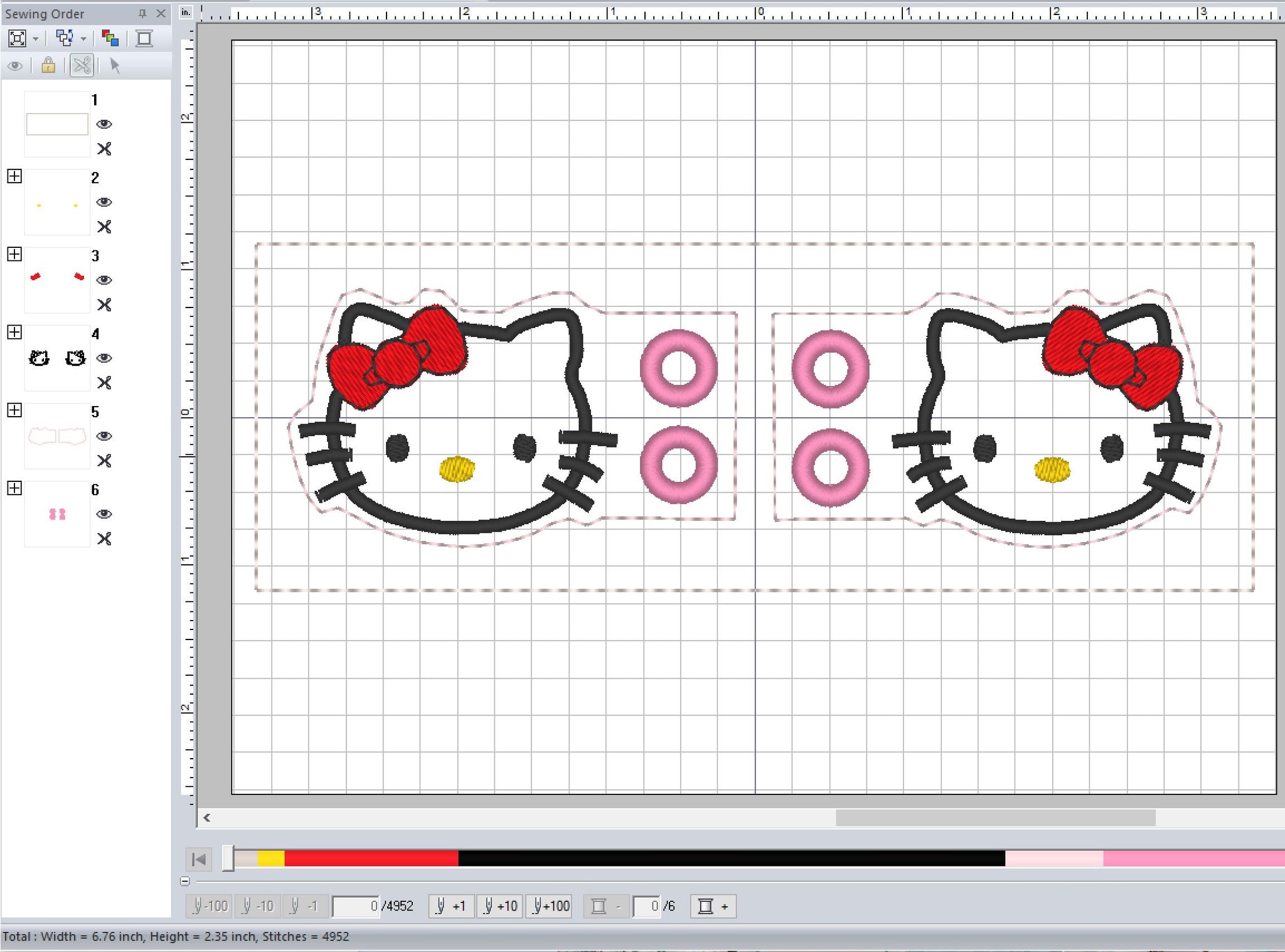 ITH Digital Embroidery Pattern for Hi Kitty Shoe Wings, 4X4 or 5X7 Hoop