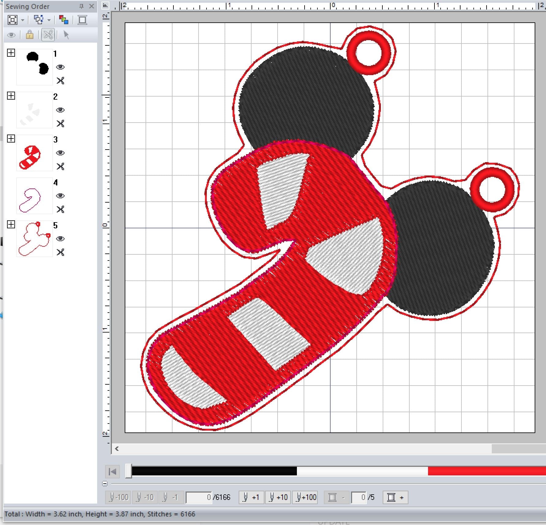 ITH Digital Embroidery Pattern for Mick Candy Cane Banner/Garland Piece, 4X4 Hoop