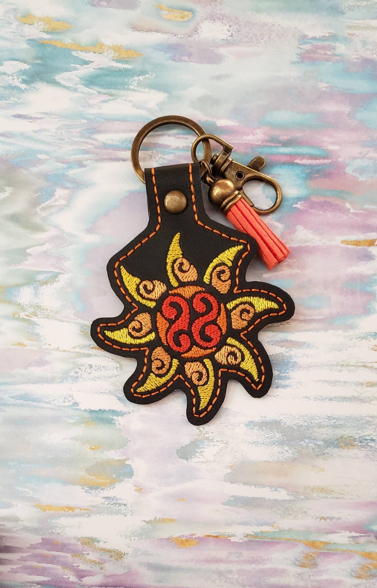 This is a Digital Pattern for Swirl Sun Inner Fill Snap Tab / Key Chain Embroidered Design.