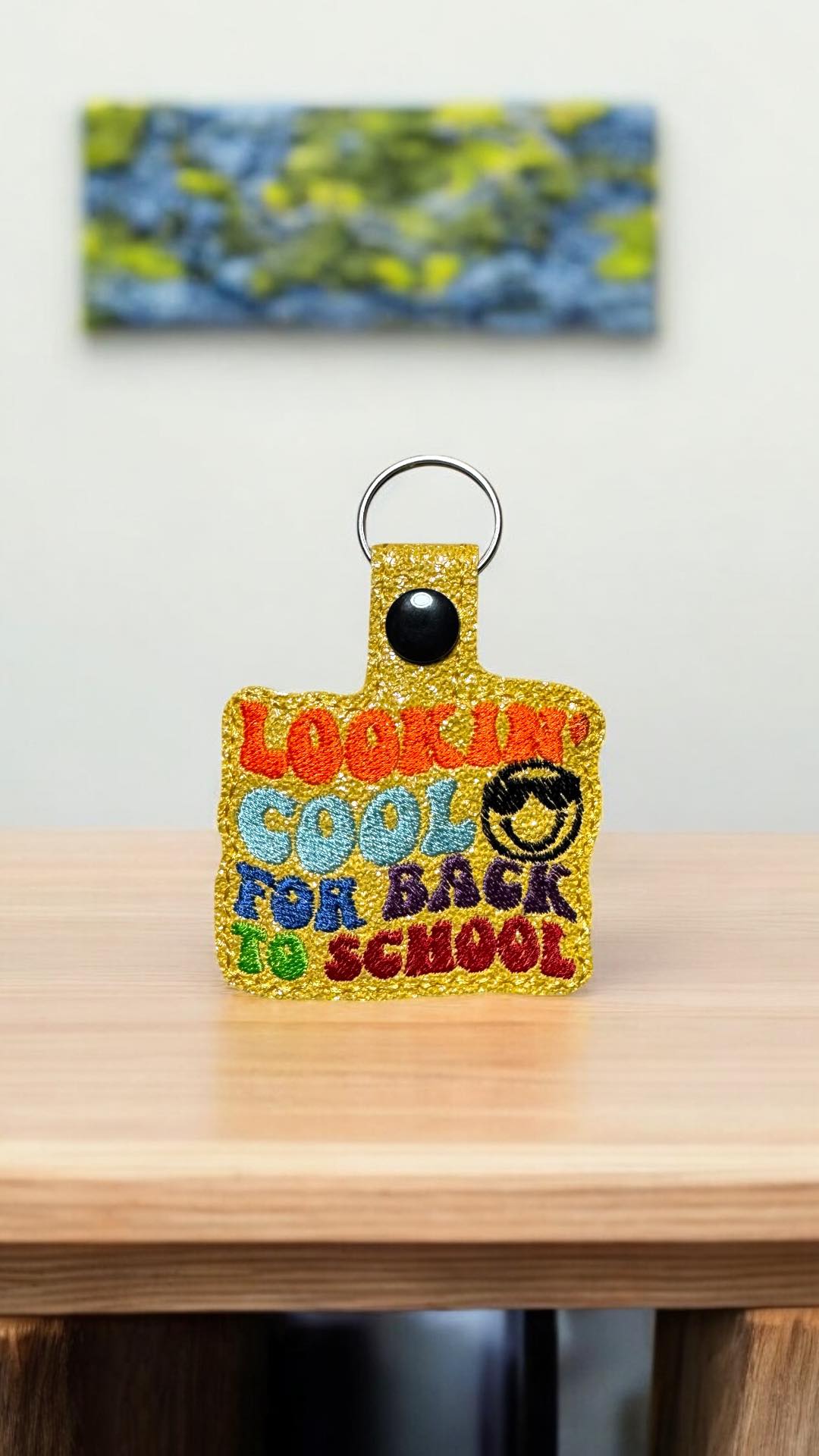 This is a Digital Pattern for  Lookin Cool for Back to School Snap Tab / Key Chain Embroidered Design.