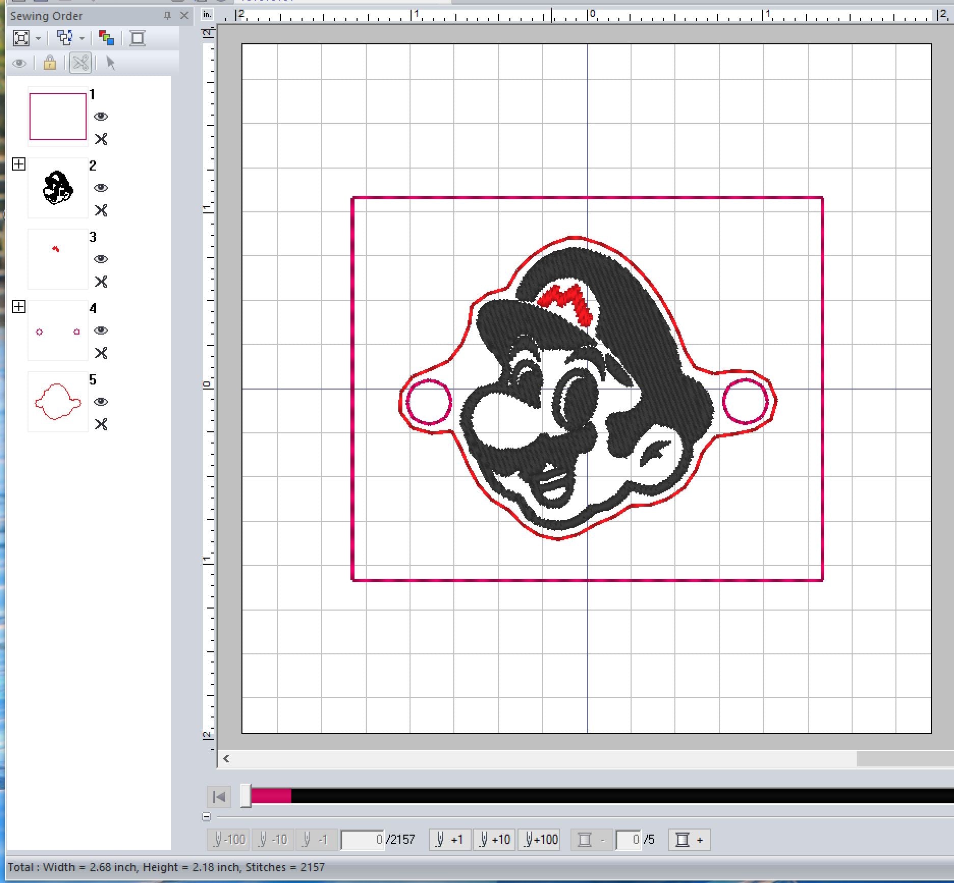 ITH Digital Embroidery Pattern for Bracelet Charm Mario, 2X2 Hoop