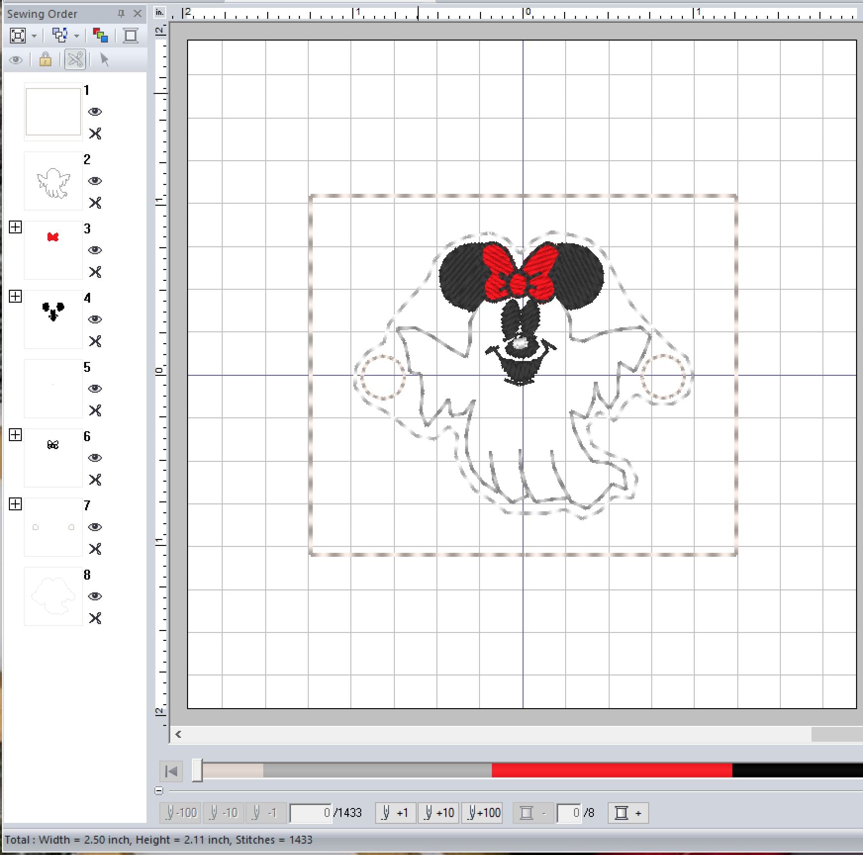 ITH Digital Embroidery Pattern for Bracelet Charm Minnie Ghost, 2X2 Hoop