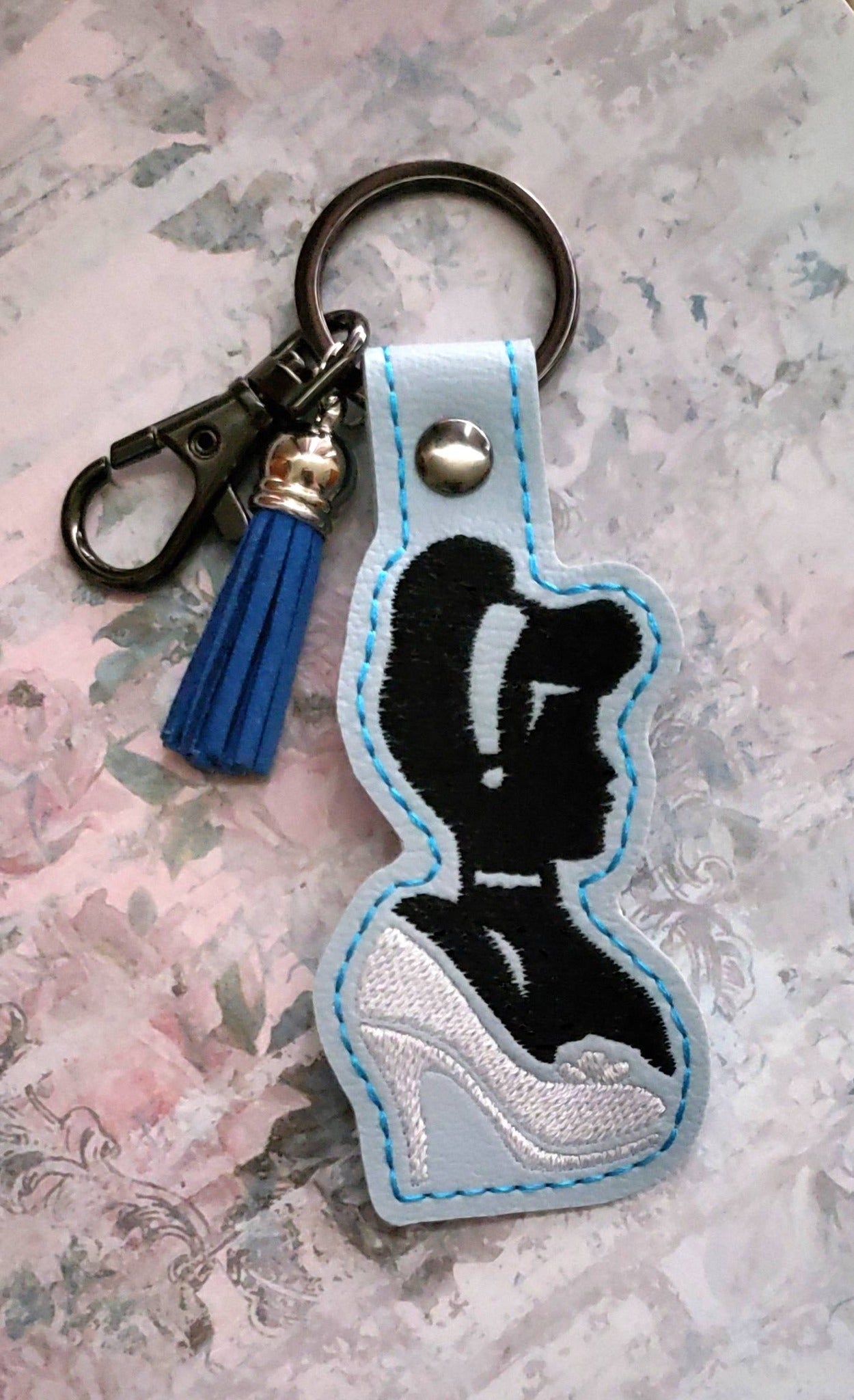 This is a Digital Pattern for Cinder with Slipper Snap Tab / Key Chain Embroidered Design.