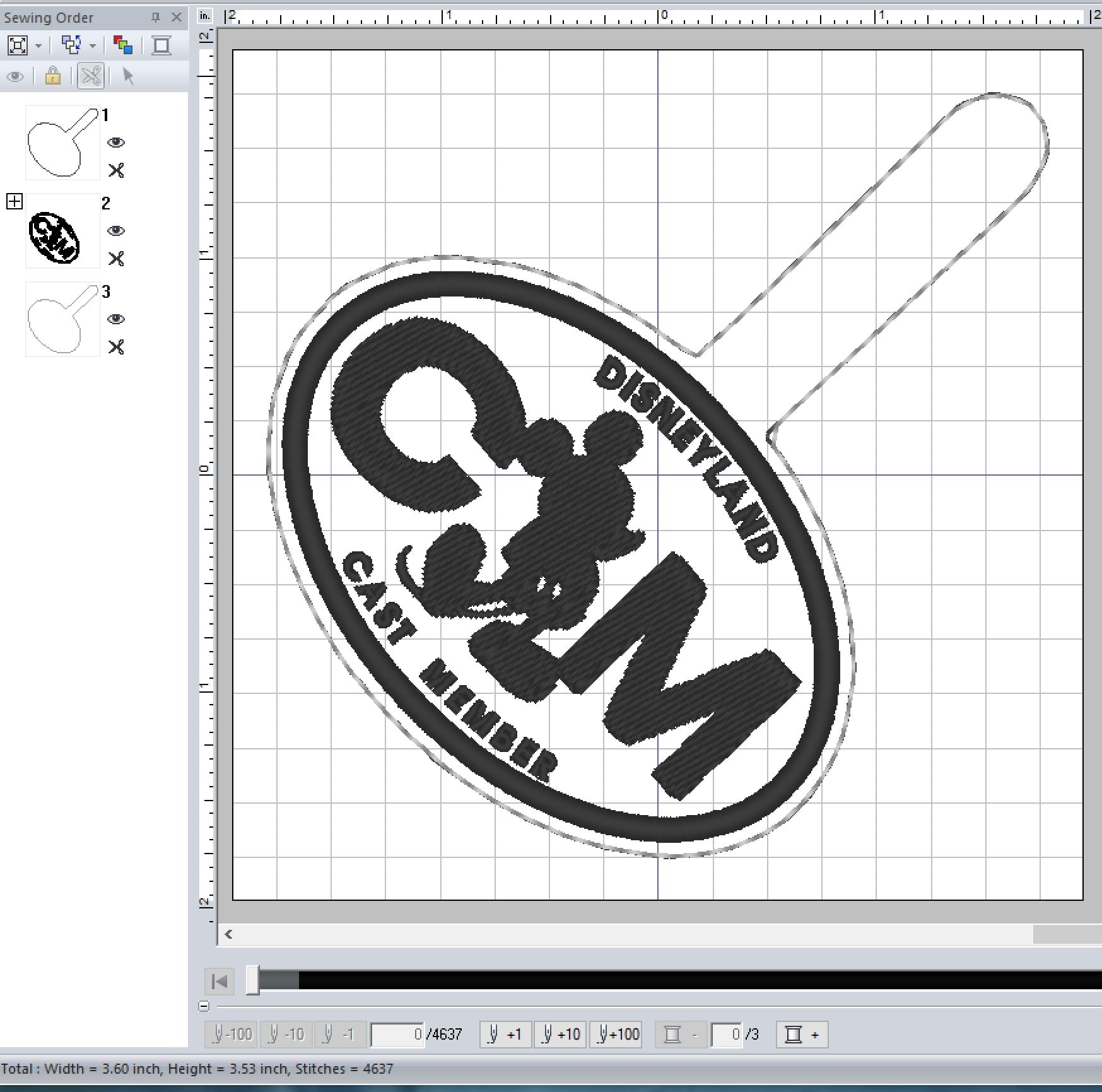 ITH Digital Embroidery Pattern for D-Land C-Member Snap Tab / Key Chain, 4X4 Hoop