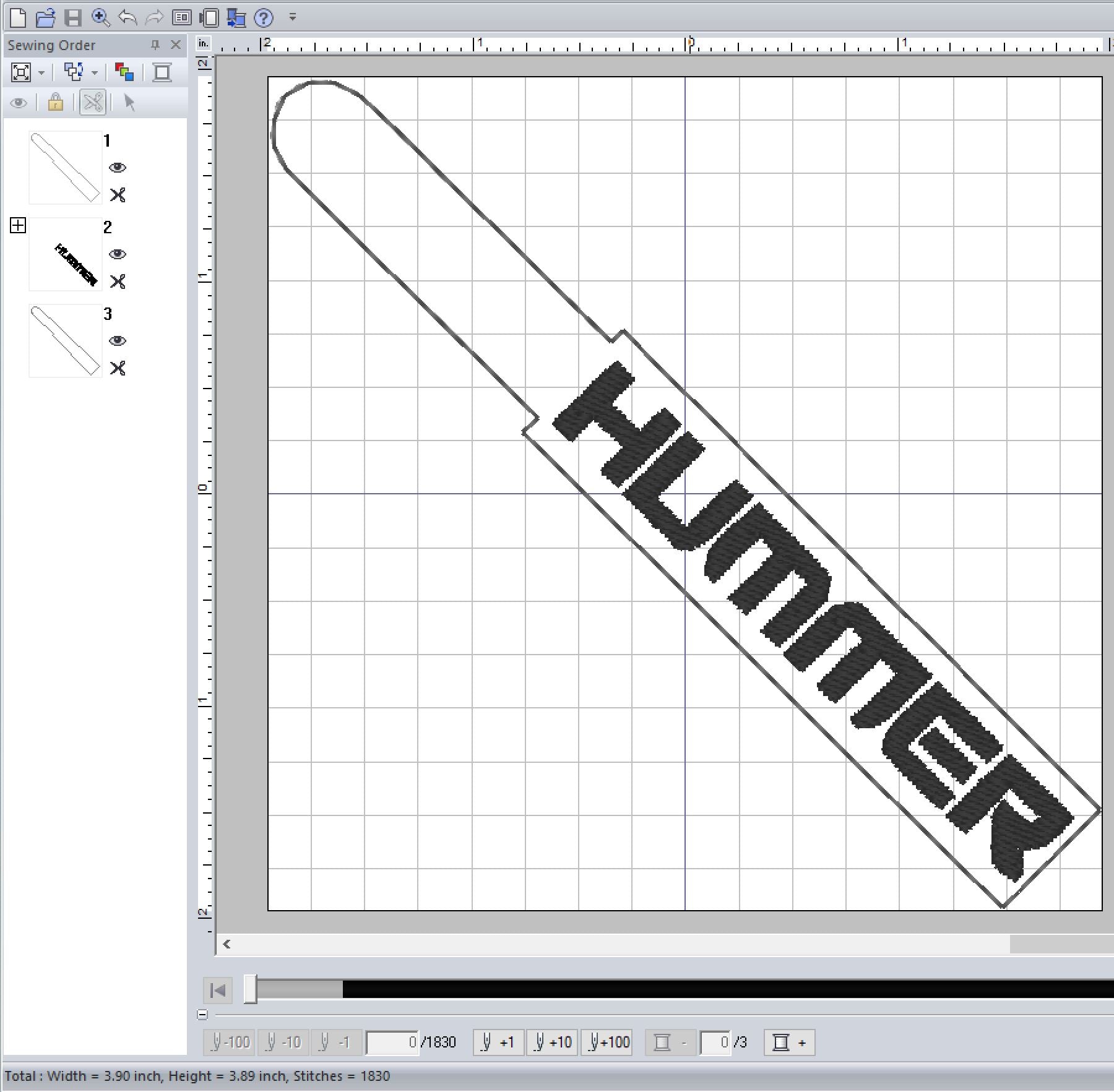 ITH Digital Embroidery Pattern for Hummer Snap Tab / Key Chain, 4X4 Hoop