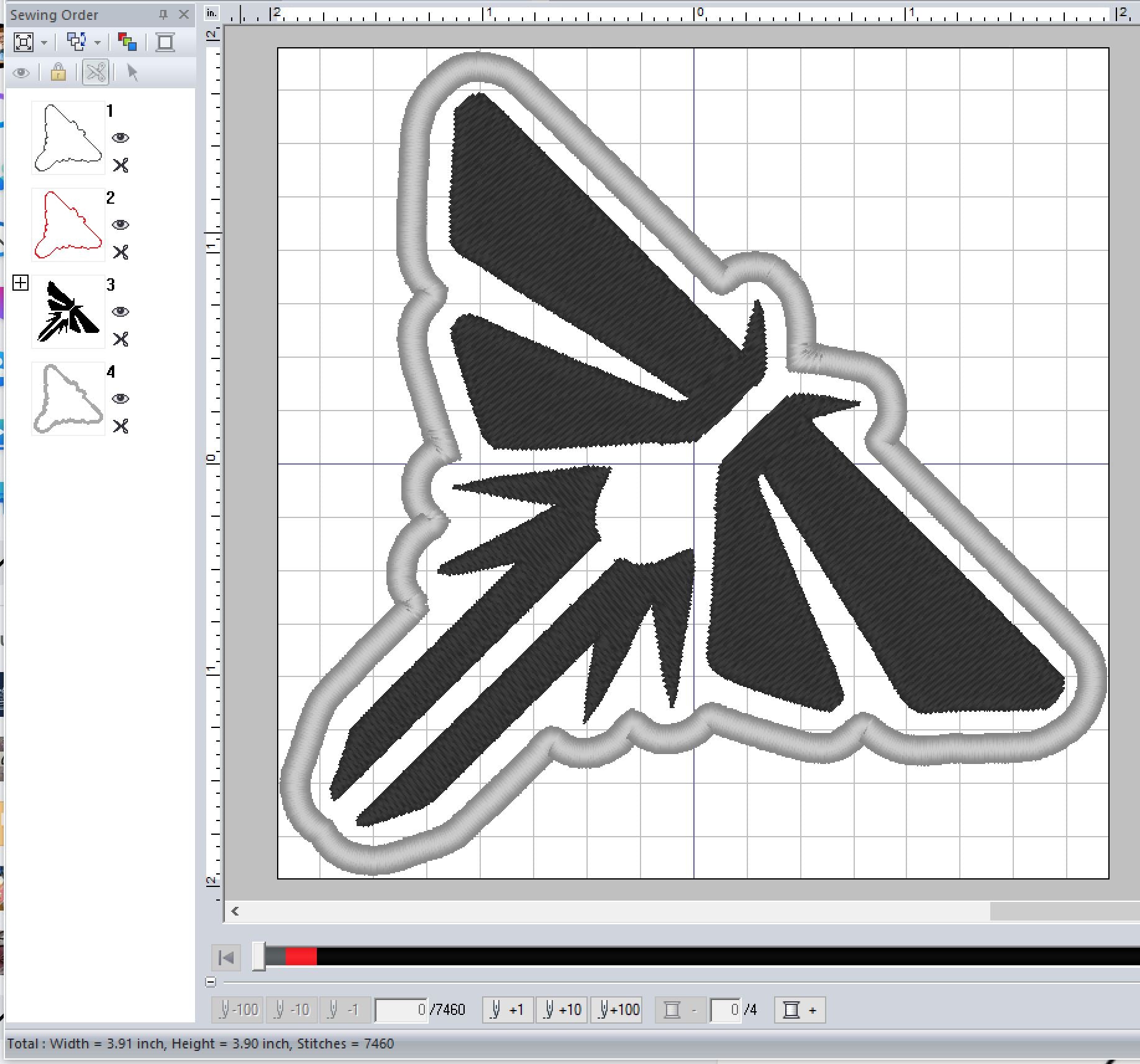 This pattern is 4X4 hoop friendly. This ITH design cannot be Split.