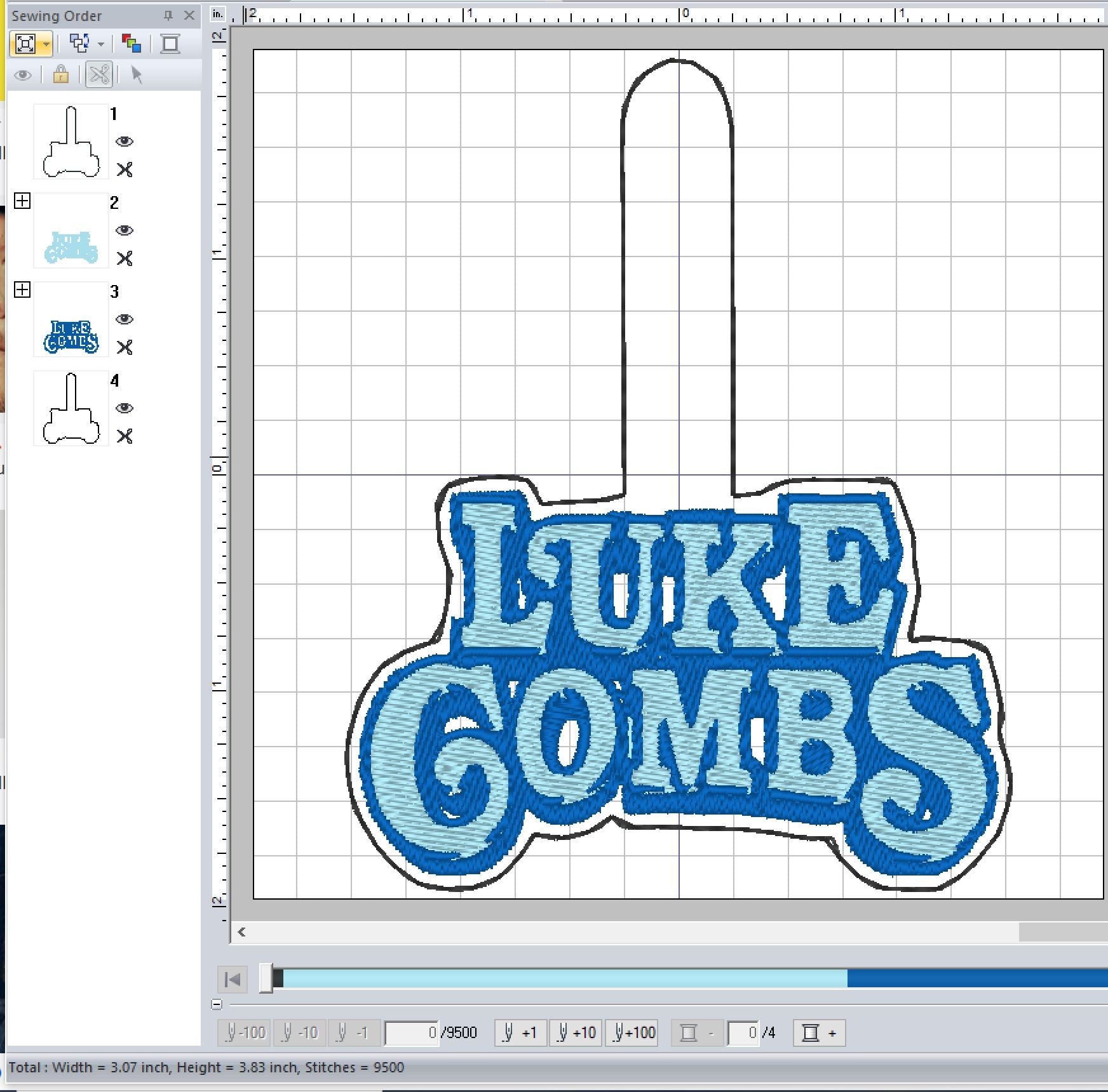 ITH Digital Embroidery Pattern for Luke Combs Snap Tab / Keychain, 4X4 Hoop