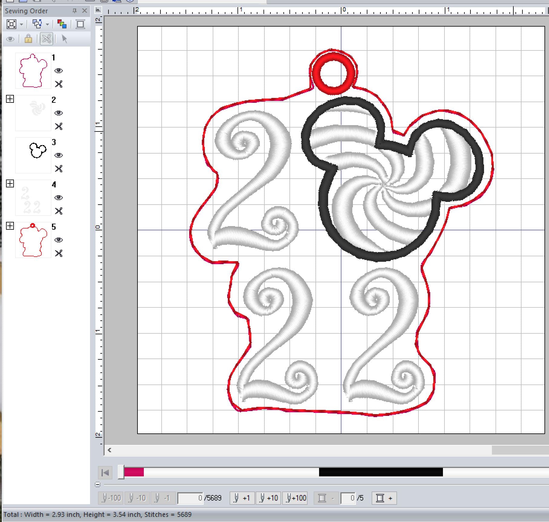 ITH Digital Embroidery Pattern for Mint Mouse 2022 Ornament, 4X4 Hoop