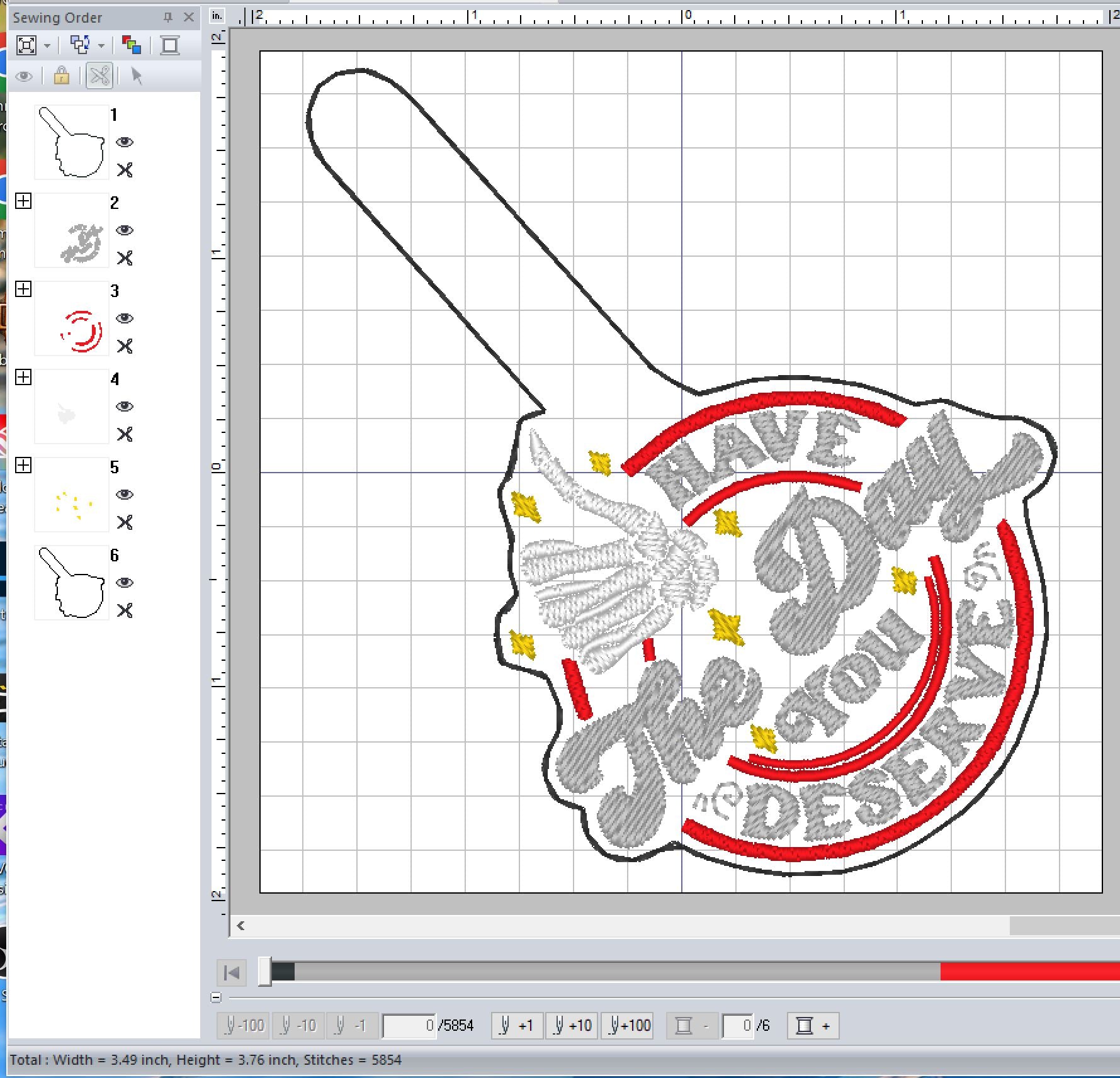 This pattern is 4X4 hoop friendly. This ITH design cannot be Split.